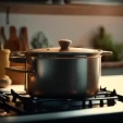 Stainless steel pan with multi-layer bottom, induction coating and ergonomic handles